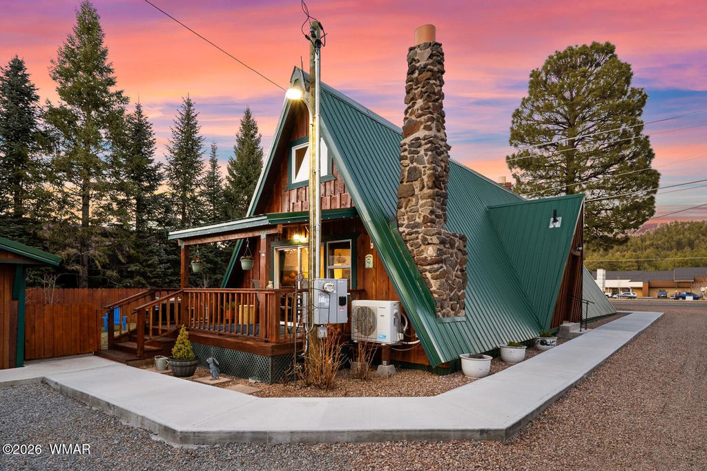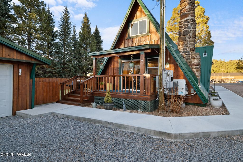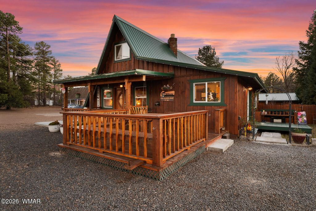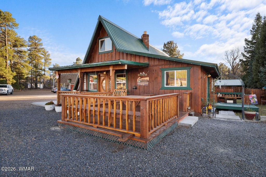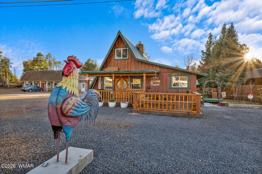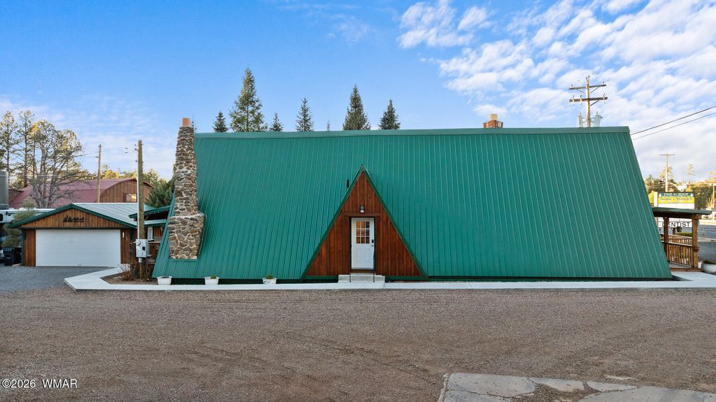 Prime highway frontage commercial property in the heart of the highly sought-after Pinetop-Lakeside area! Zoned C-1 with 35+ permitted uses, this versatile property offers incredible potential for a wide variety of businesses including a bakery, bar, restaurant, art studio/shop, dance studio, boutique, and much more--let your imagination run! Uniquely, this property can also function as a residential home, qualifying for a residential loan, or it can be utilized commercially for your business venture. The property features two separate units, each offering 1 bedroom, 1 bath, and a loft--perfect for additional sleeping space, office, or flex room. Both units include full kitchens, creating ideal options for short-term rentals, long-term rentals, live/work opportunities, or multi-generational living. Rent one unit and live in the other, operate a business in one space and reside in the other--the possibilities are endless. Recently fully restored, the property showcases: " Durable metal roof " Attractive wood siding " Two-car detached garage " Landscaped yard " Covered front and back decks " Excellent highway visibility for business exposure Interior features include two electric fireplaces (one in each unit), a pellet stove in the front unit, and a beautiful stone fireplace that adds warmth and character. Situated at an elevation of over 6,800 feet, you'll enjoy cool mountain summers, crisp winters, and all four beautiful seasons. Whether you're looking for a business opportunity, investment property, short-term rental, or mountain getaway, this unique property delivers unmatched flexibility in a fantastic location.
