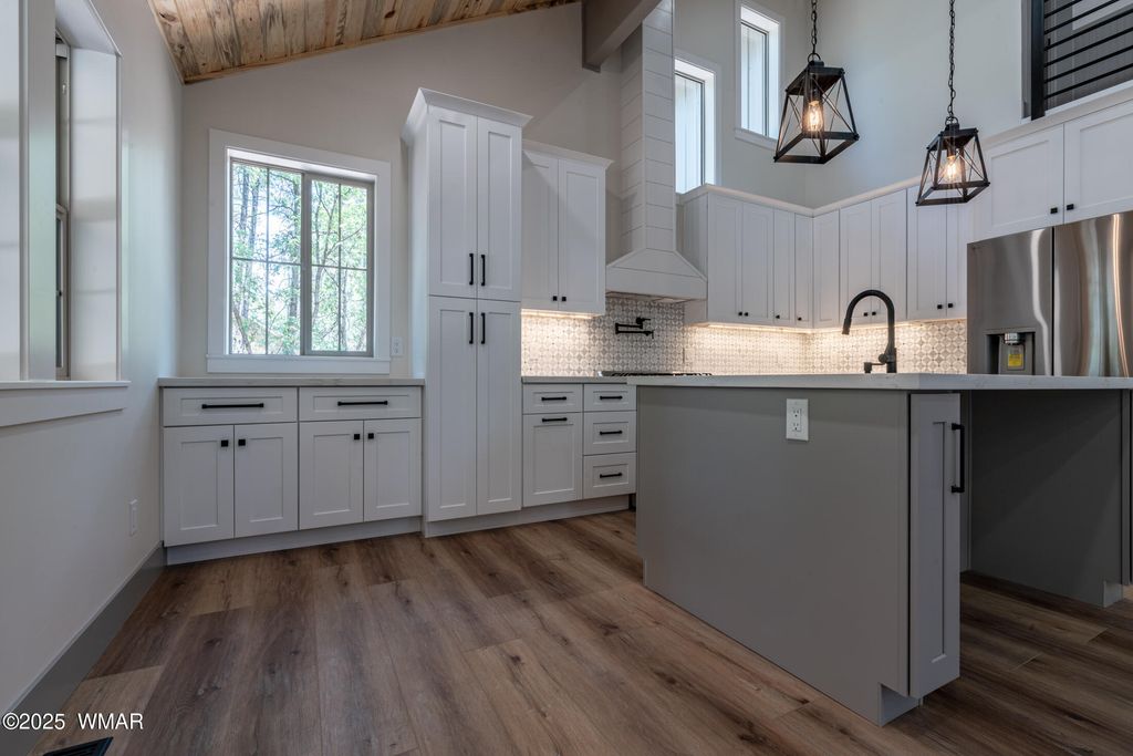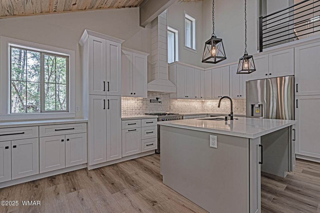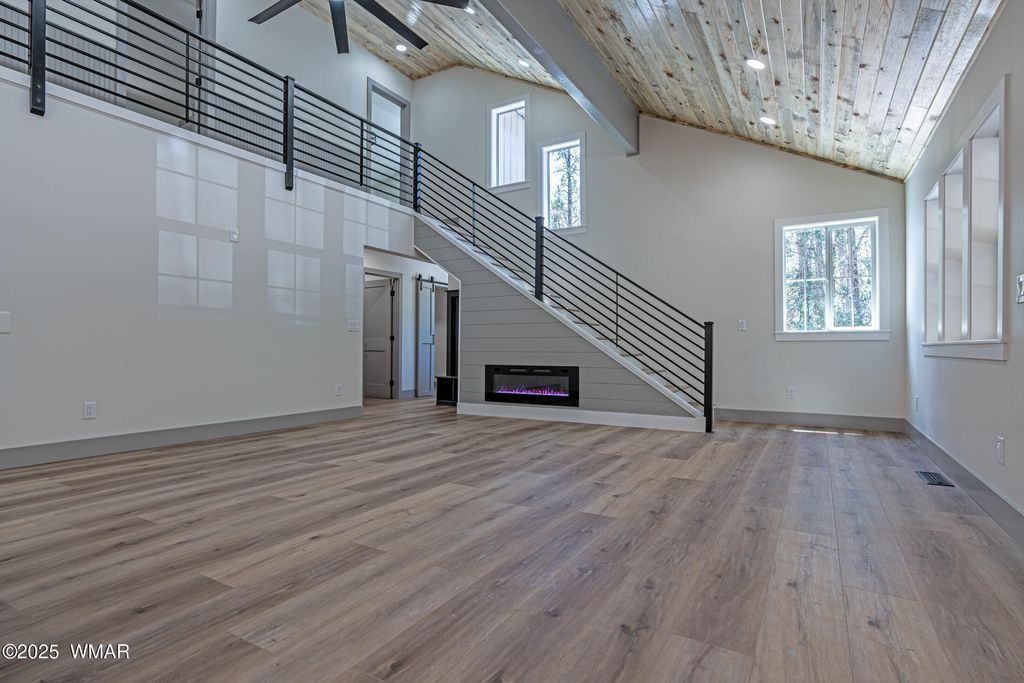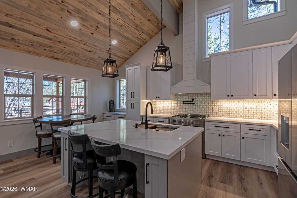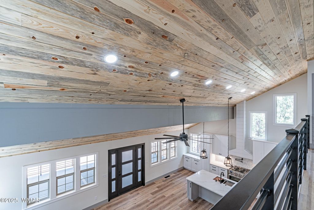 Enjoy essentially a brand-new home on a 1/2 ACRE lot tucked away in the pines near Woodland Lake. Fully renovated from the studs in. No HOA, no CCRs. NEW Firewise metal roof, siding, soffits and gutters. HUGE TREX deck with tongue & groove blue pine ceiling, custom powder coated steel railings & a 8 ft ceiling fan. No Expense spared w/NEW spray foam insulation, HVAC/furnace, solid core shaker doors, tankless water heater, ship lap accents, luxury vinyl plank floors & a redesigned layout with 4 bedrooms. The kitchen boasts quartz counters, 4x6 island, high-end appliances, pot filler, coffee bar, & two cabinet pantries. Spa-like bathrooms with tile surrounds, rain shower, & designer finishes. Milgard windows, fresh rock driveway, new septic & much more. Owner is a licensed AZ realtor.
