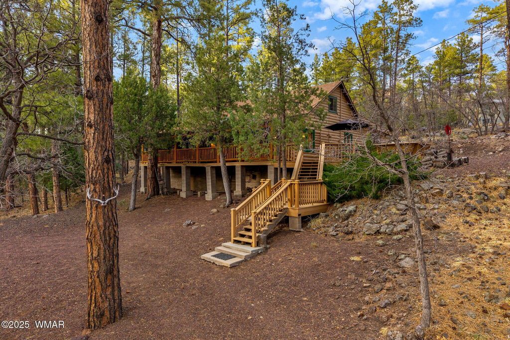 Nestled in the tall pines on Billy Creek and situated on two lots totaling approximately 1.39 acres, this beautifully crafted 4-bedroom, 3-bathroom log cabin offers the perfect blend of peaceful seclusion and everyday convenience. Whether you're looking for a full-time residence, a weekend family getaway, or a prime investment opportunity, this property has it all. Enjoy the soothing sounds of the creek that runs along the edge of the property as you relax on the spacious deck or gather around a firepit under the stars. Inside, warm wood finishes and an inviting open layout create a cozy yet functional living space, ideal for entertaining or just unwinding after a day in nature. The property offers room to breathe, space to explore, and the true feeling of being away from it all yet it's still within easy reach of town amenities and outdoor adventure. Don't miss this rare opportunity to own a slice of mountain paradise!