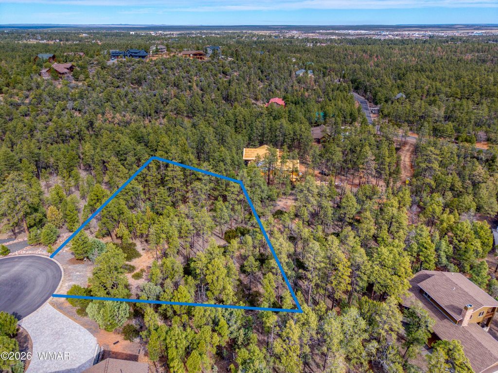 Nestled in the highly sought-after Sierra Pines community in Show Low, AZ, this beautiful .77-acre homesite offers the perfect setting for your mountain home. Surrounded by towering Ponderosa Pines and natural forest landscape, the property provides a peaceful and private atmosphere while still being just minutes from the conveniences of town. Located on a quiet cul-de-sac, the gently sloping terrain provides an excellent home site for a custom cabin or a luxury mountain home. Sierra Pines is known for its large, wooded lots, paved roads, underground utilities, and a well-maintained community feel, giving you the best of four-seasons living in the White Mountains. Enjoy cool summers, fresh mountain air, wildlife sightings, and easy access to hiking, fishing, golf, biking and more. Tree survey has been completed and is located in the