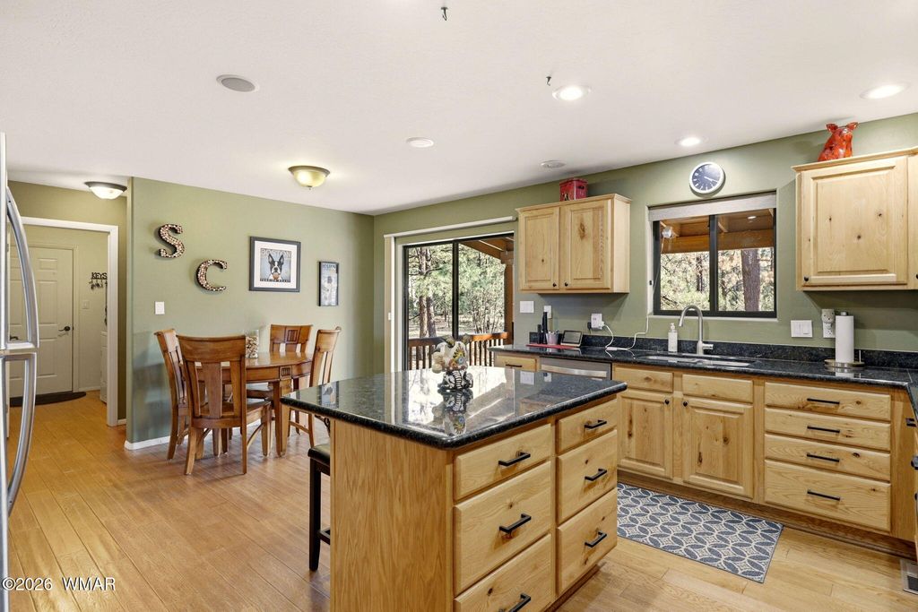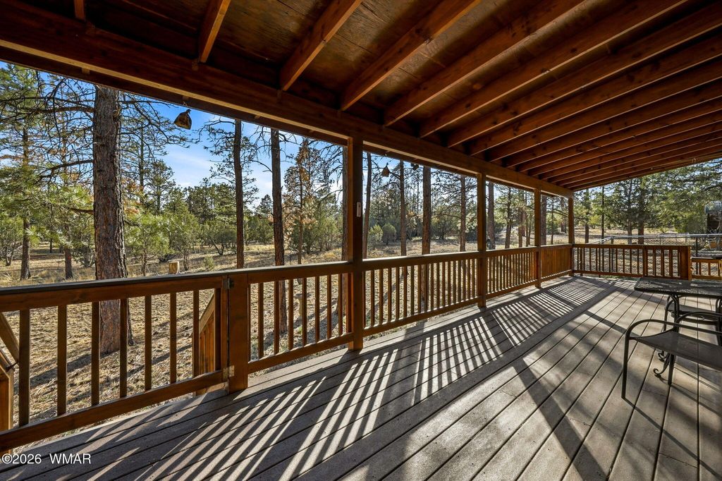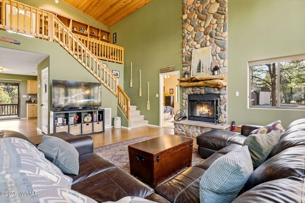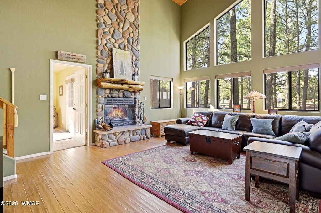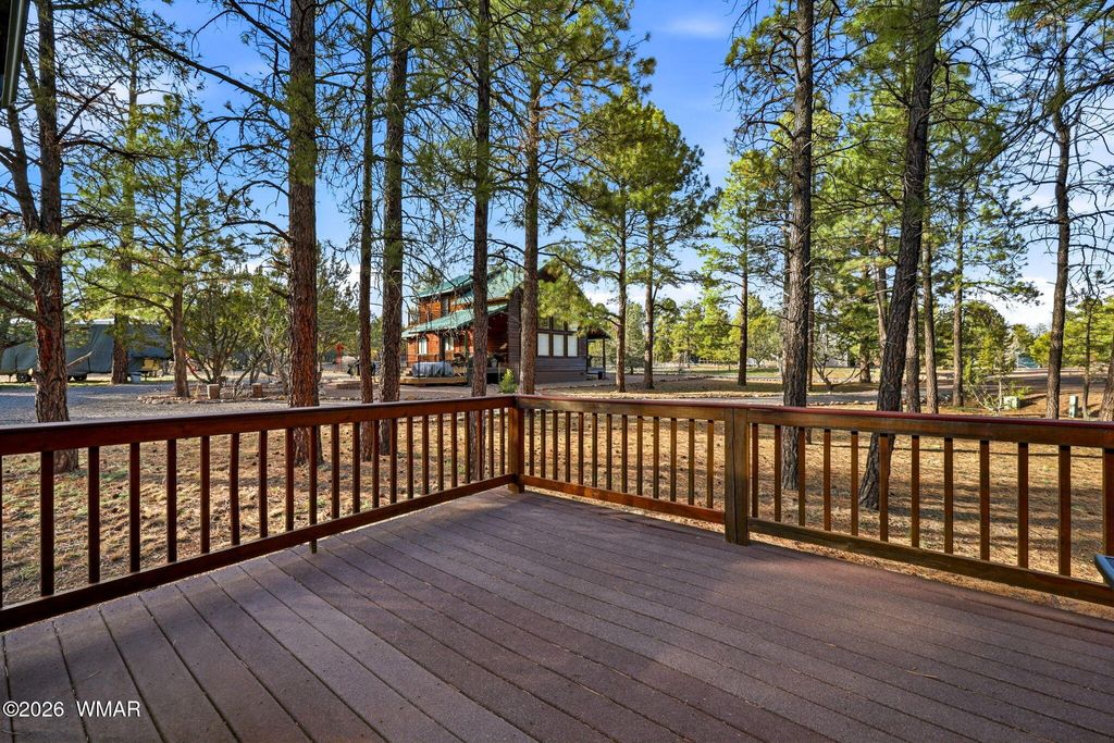 Mountain Chalet Retreat Among the Ponderosa Pines Experience true mountain living in this stunning log-sided chalet-style home surrounded by towering Ponderosa Pines. With 1,928 sq ft, 3 bedrooms, 3 baths, and a spacious loft, this home offers the perfect blend of rustic charm and modern comfort. Step into the great room where a dramatic wall of windows brings the outdoors in and fills the home with natural light. The centerpiece of the living area is a spectacular floor-to-ceiling rock-faced wood-burning fireplace, perfect for cozy mountain evenings. The kitchen is designed for both function and style with granite countertops, abundant knotty oak cabinetry, and convenient pull-out drawers. Relax and entertain on the large covered deck, ideal for enjoying cool mountain air and peaceful forest views. Additional highlights include: Attached two-car garage Detached two-car garage (perfect for toys, workshop, or extra vehicles) Central propane heat with air conditioning New roof currently being installed This beautiful chalet offers privacy, space, and the perfect setting for year-round living or a mountain getaway.