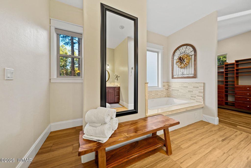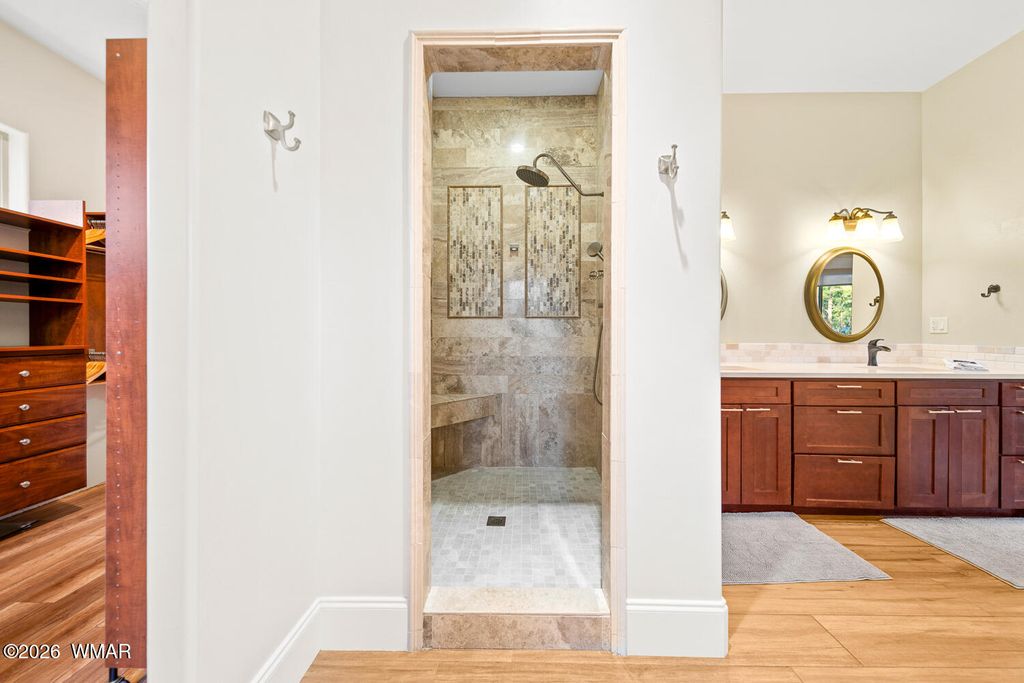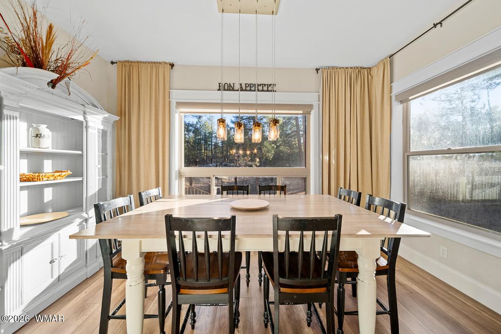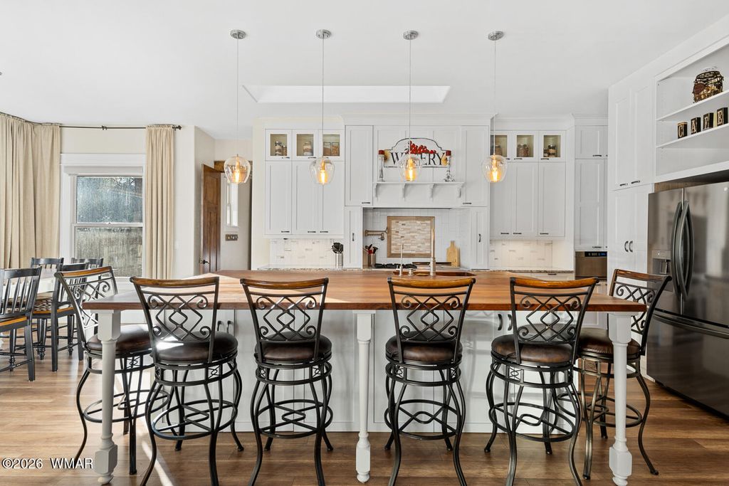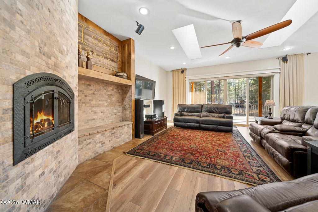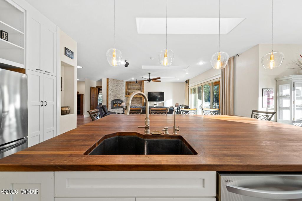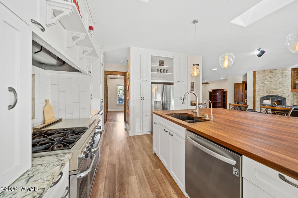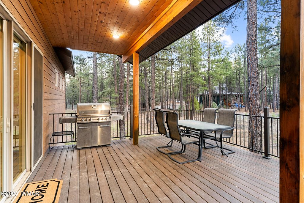 The'' PERFECT MOUNTAIN ESTATE'' awaits in the beautiful White Mountains of Arizona. Located in the charming community of Lakeside Arizona. This FULLY FURNISHED custom home offers approximately 3,600 square feet of refined living space and showcases exceptional craftsmanship, thoughtful design, and true mountain elegance. The heart of the home is a gourmet chef's kitchen featuring high-end commercial range with custom hood, pot filler, granite countertops, gorgeous tile backsplash, and an expansive black walnut island perfect for gathering and entertaining. Additional highlights include: custom cabinetry, crown molding, hardwood floors & a large walk-in pantry, all designed with both beauty and function in mind. The spacious great room features soaring 10+ foot ceilings, abundant natural light, and a stunning stone wood-burning fireplace that creates the perfect centerpiece for cozy mountain evenings. Large windows and sliders lead to the back deck, offering beautiful views of the surrounding towering pines. This home offers four spacious bedrooms and 4.5 bathrooms, with every bedroom featuring its own private en-suite, ensuring comfort and privacy for family and guests. The primary suite is a luxurious retreat with dual vanities, a jetted Jacuzzi soaking tub, a large custom tile walk-in shower, and a spacious walk-in closet with custom built-ins. One of the guest suites even features its own private deck, creating a peaceful retreat for visitors. Above the garage, a large flex room provides endless possibilities--perfect for a home office, game room, media room, exercise space, hobby room, or additional sleeping area. Situated on nearly 2 acres of flat usable land with its own PRIVATE WELL (800 feet deep) at the end of a Cul-De-Sac. The property features lush grass with a sprinkler system, towering pines, providing both beauty and privacy. The exterior is designed for easy maintenance with SmartSide siding, beautiful stone accents, and durable Trex-style decking on both the front and back of the home. In addition to the oversized two-car garage, the property includes an impressive 40' x 50' detached site-built RV garage/workshop complete with 14+ foot ceilings, 14-foot roll-up doors, concrete floors, a wood-burning stove, and a half bath. This incredible space is ideal for RV storage, a car collector's garage, workshop, mechanic's dream space, or hobby shop. With no HOA, breathtaking surroundings, and exceptional quality throughout, this one-of-a-kind mountain estate truly has it all. Living in the beautiful White Mountains, Arizona means access to year-round recreation including nearby lakes, national forest trails, rivers, golf courses, horseback riding, biking, fishing, and skiing, making this property not only a home but a true mountain lifestyle retreat.