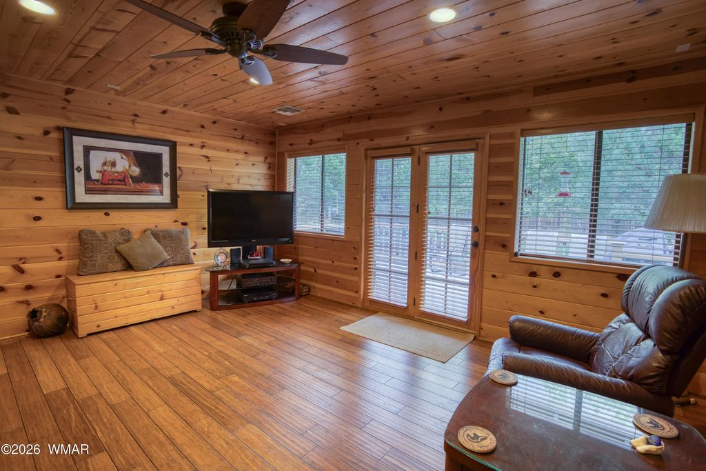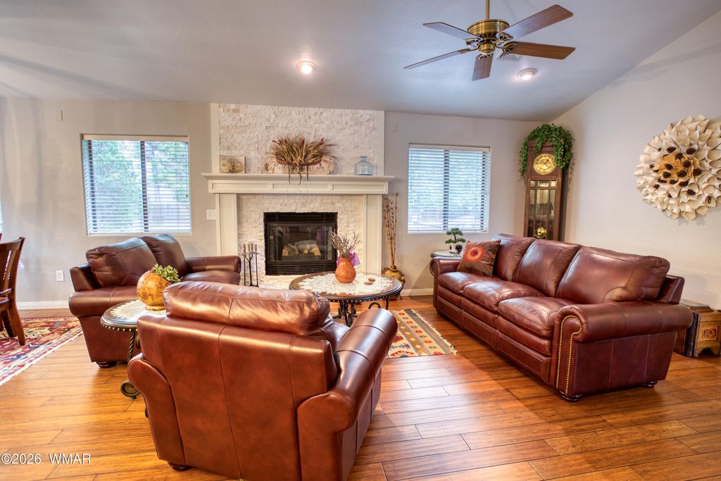 Luxury mountain living awaits in this beautifully remodeled and fully furnished home located in the prestigious gated community of The Shores at Rainbow Lake. Surrounded by custom homes and set back on a private, landscaped lot, this property offers the perfect balance of comfort, elegance, and mountain tranquility. From the moment you arrive, the welcoming covered porch and manicured approach set the stage for the quality found throughout the home. Inside, rich hardwood floors lead you into a stunning open great room designed for both relaxation and entertaining. A striking stone fireplace creates a warm focal point while expansive living spaces invite gatherings with family and friends. The kitchen is designed with both style and function in mind, featuring elegant stone countertops a spacious island for entertaining, stainless gas range, and designer pendant lighting. The adjoining dining space provides the ideal setting for hosting memorable dinners after a day on the lake. The spacious primary suite is a true private retreat, offering dual closets, a dedicated office or sitting area, and a beautifully remodeled spa-inspired ensuite featuring dual vanities, a makeup station, glass-front cabinetry, a walk-in glass shower, and a luxurious soaking tub. Oversized guest bedrooms provide comfort and privacy, while the updated guest bath showcases double vanities, a stylish shiplap accent wall, statement mirrors, and a glass-enclosed tub/shower combination. A versatile secondary living space offers endless possibilities, ideal for a media room, game room, office, or private lounge, and opens directly to the expansive back deck and beautifully landscaped backyard designed for peaceful outdoor living. Additional highlights include a new roof, extensive remodel, abundant storage throughout, and an extended 3-car garage with additional storage space. Residents of The Shores enjoy exclusive access to a private boat launch on Rainbow Lake, along with community tennis courts, pickleball courts, basketball, and a charming gazebo gathering area; all within one of the area's most sought-after gated neighborhoods. Offered fully furnished, this exceptional property is truly move-in ready and perfect as a luxury mountain retreat or full-time residence. ** A list of non-conveying items will be provided. No items in the garage convey. ** Homes of this caliber in The Shores at Rainbow Lake rarely become available, and this one must be experienced in person to truly appreciate. **** Discover the White Mountains of Arizona--where adventure, beauty, and fresh mountain air come together. Enjoy four stunning seasons, 40 lakes, and 600+ miles of rivers and streams, perfect for fishing, kayaking, and exploring. Hit the trails on one of the largest trail systems in the Southwest, or spend winter days at Sunrise Ski Resort, just 40 minutes away with three mountains of skiing, snowboarding, and sledding. Love shopping or culture; wander through antique shops, summer arts & craft fairs, and lively music festivals. Golfers can tee off at seven scenic courses, including three public gems. It's no wonder Pinetop-Lakeside was voted the "Best Cabin Region in the U.S." The White Mountains--Arizona's best-kept secret. Come explore and embrace the MAGIC!