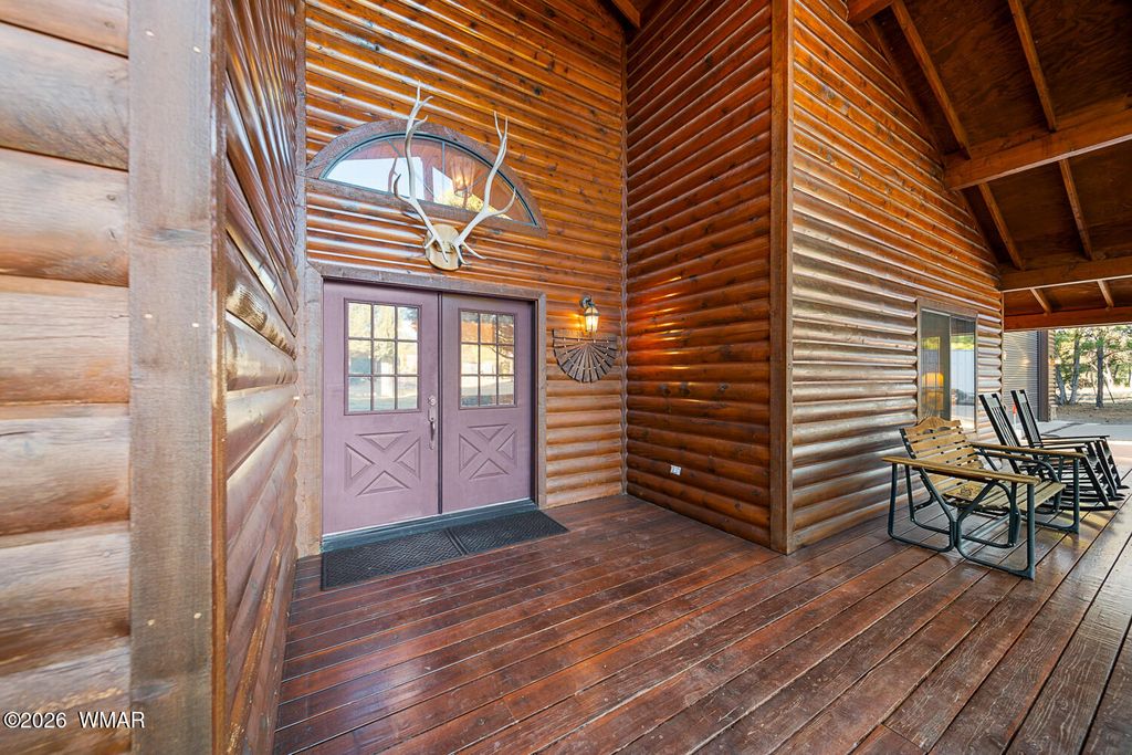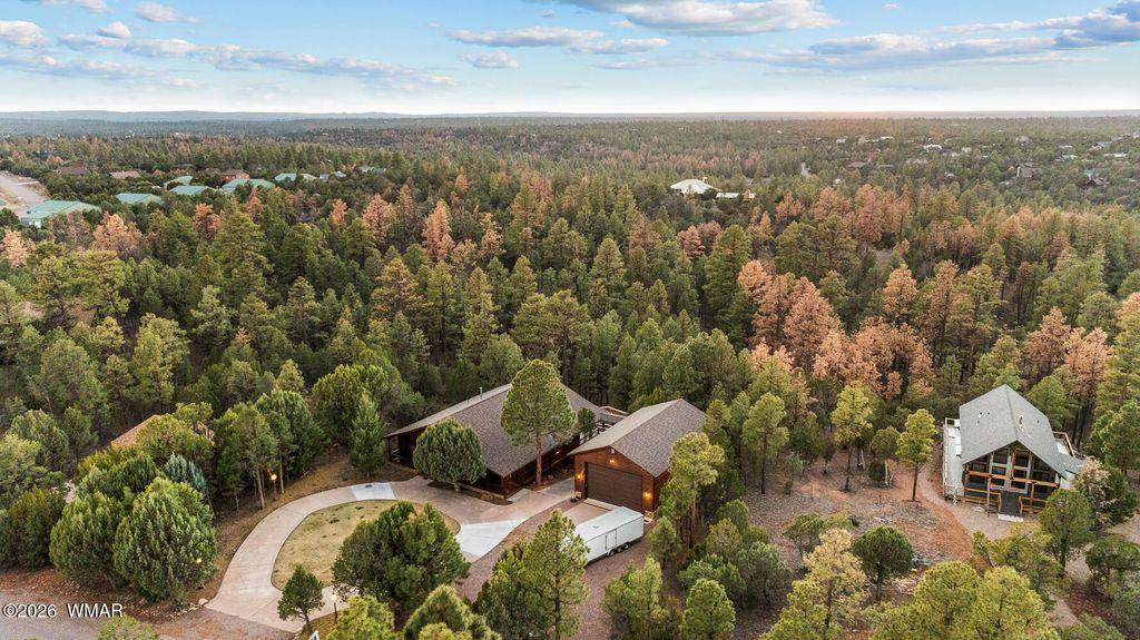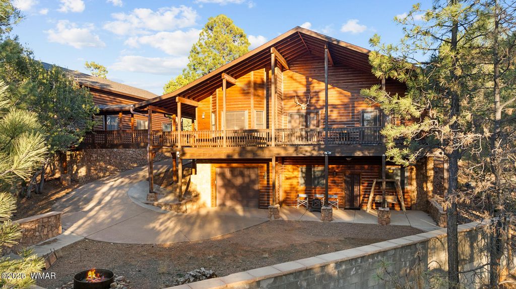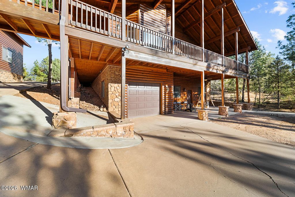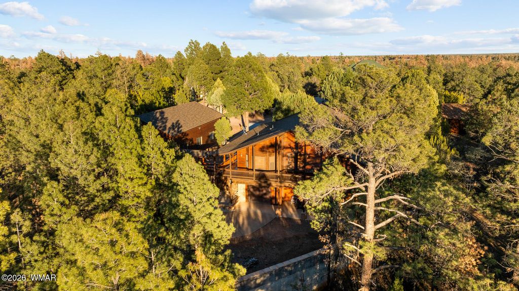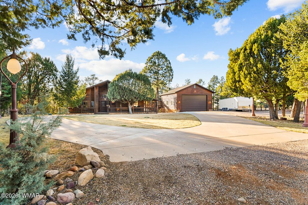 This one owner custom built log sided home is the perfect place to start building new family memories. The 3,734 sq. ft. home features 3 bedrooms and 2 baths plus a family friendly kitchen and open great room on the main living area along with plenty of outdoor living on the spacious wrap around deck. The daylight basement will add to the enjoyment with it's full bar, TV and games area plus a potential bedroom/craft room and a full bath. There is even more outdoor living with the walk out covered patio area leading out the the level 1.00 acre lot with tall pines everywhere. Wait, there's more, the 1,500 sq. foot detached garage is easily accessible with the attached breezeway to the home. The landscaped lot and central Overgaard location just 2.5 hrs from Phoenix make it easy to enjoy