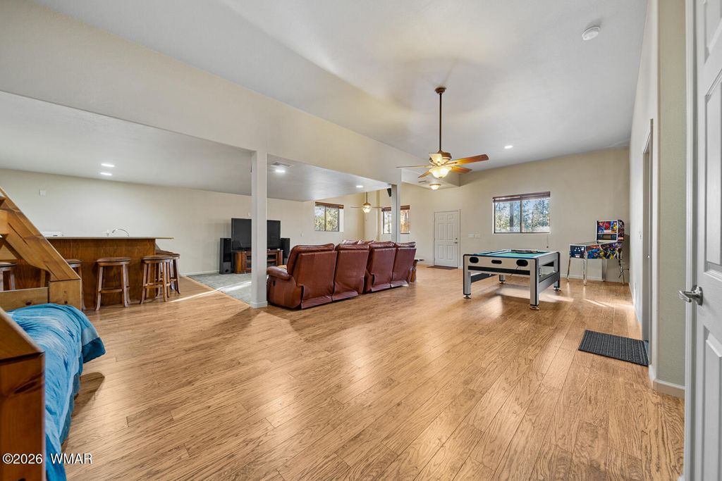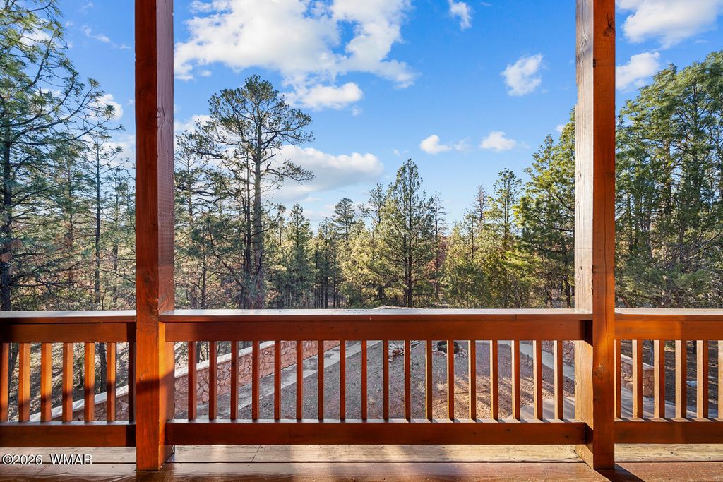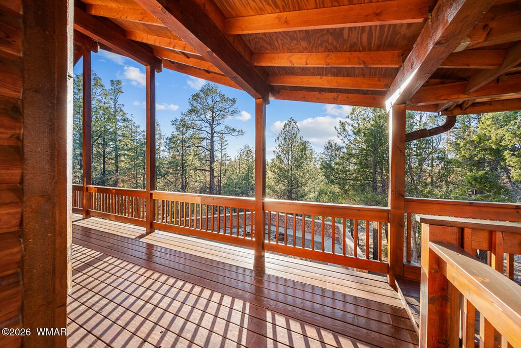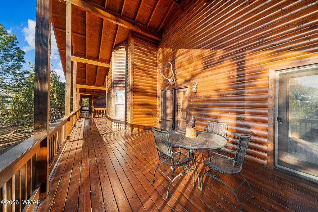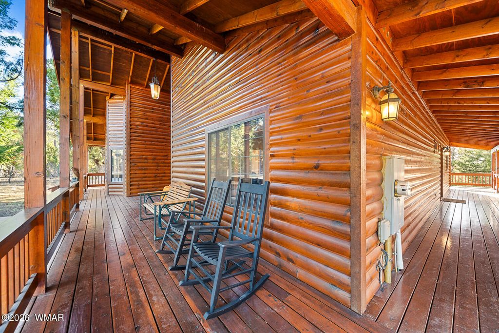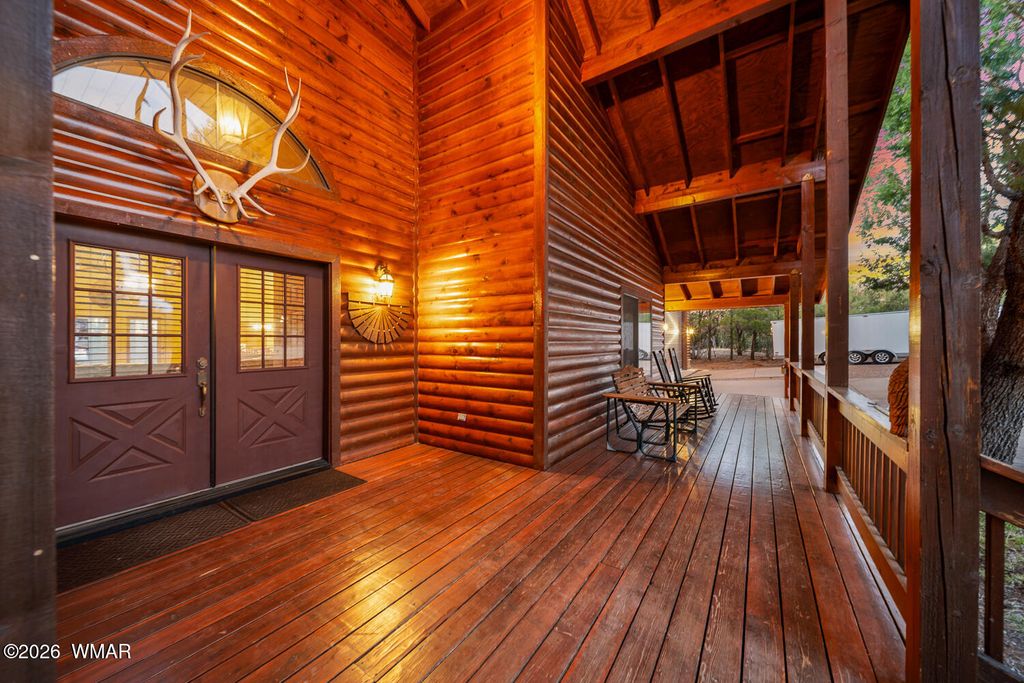 This one owner custom built log sided home is the perfect place to start building new family memories. The 3,734 sq. ft. home features 3 bedrooms and 2 baths plus a family friendly kitchen and open great room on the main living area along with plenty of outdoor living on the spacious wrap around deck. The daylight basement will add to the enjoyment with it's full bar, TV and games area plus a potential bedroom/craft room and a full bath. There is even more outdoor living with the walk out covered patio area leading out the the level 1.00 acre lot with tall pines everywhere. Wait, there's more, the 1,500 sq. foot detached garage is easily accessible with the attached breezeway to the home. The landscaped lot and central Overgaard location just 2.5 hrs from Phoenix make it easy to enjoy