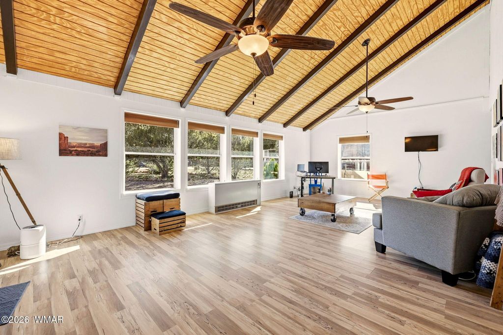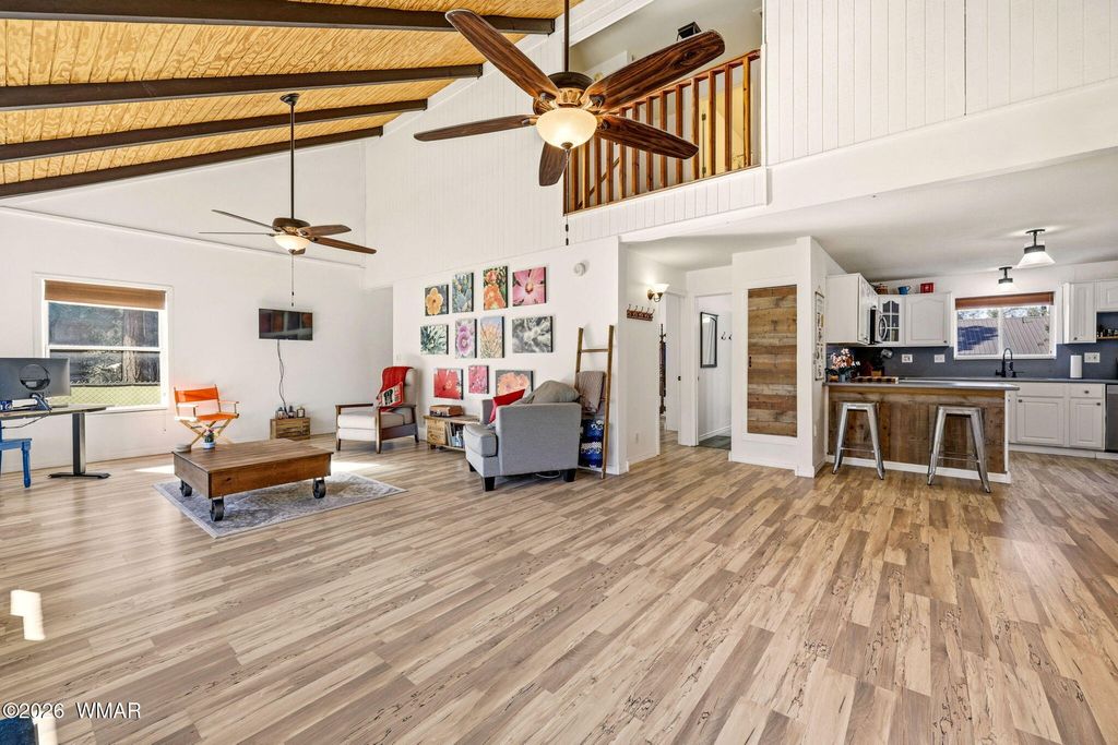 Escape to the pines in this charming 2-story Heber cabin with no HOA. With 3 bedrooms and 2 bathrooms, this mountain retreat offers the freedom to make it truly your own. Soaring vaulted ceilings fill the living space with natural light and that signature cabin feel. The fully renovated kitchen features updated cabinetry and modern finishes throughout. The two-level layout provides great separation between living and sleeping spaces, ideal for full-time living or a weekend getaway. A durable metal roof delivers low maintenance and lasting protection through every Arizona season. The attached garage adds everyday convenience and extra storage for all your outdoor gear. Whether you're seeking a primary residence or a high-country escape, this one delivers rustic charm with modern comfort.