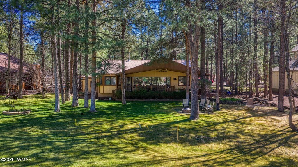 Experience fairway living at its finest in this beautiful home overlooking the first green of Pinetop Lakes Country Club. Wake up to stunning golf-course views and enjoy outdoor living at its best with raised flower beds, a welcoming covered deck, and peaceful surroundings that make every day feel like a getaway. Step inside to find rich wood flooring throughout the living area, entryway, and primary bedroom, creating a warm and elegant feel the moment you walk through the door. A spacious office/den offers flexibility for work or relaxation, while the large utility room provides the extra space you've been looking for. Need even more versatility? You'll love the flex room off the garage, perfect for a hobby space, home gym, storage, or whatever your lifestyle requires. A rare opportunity