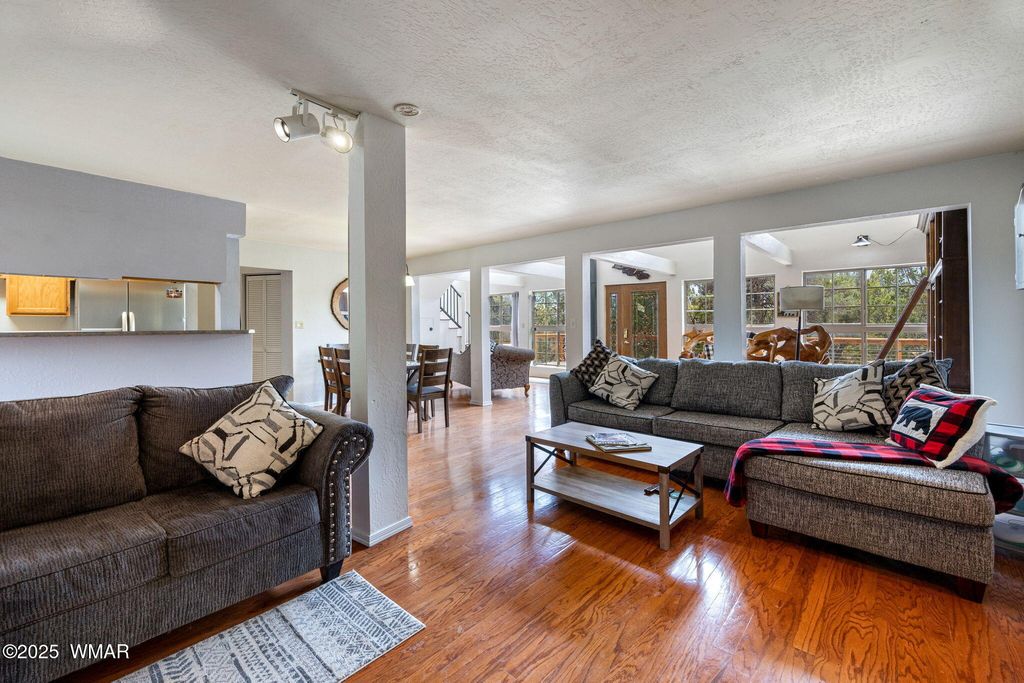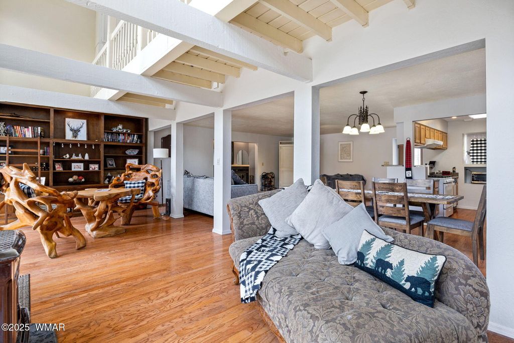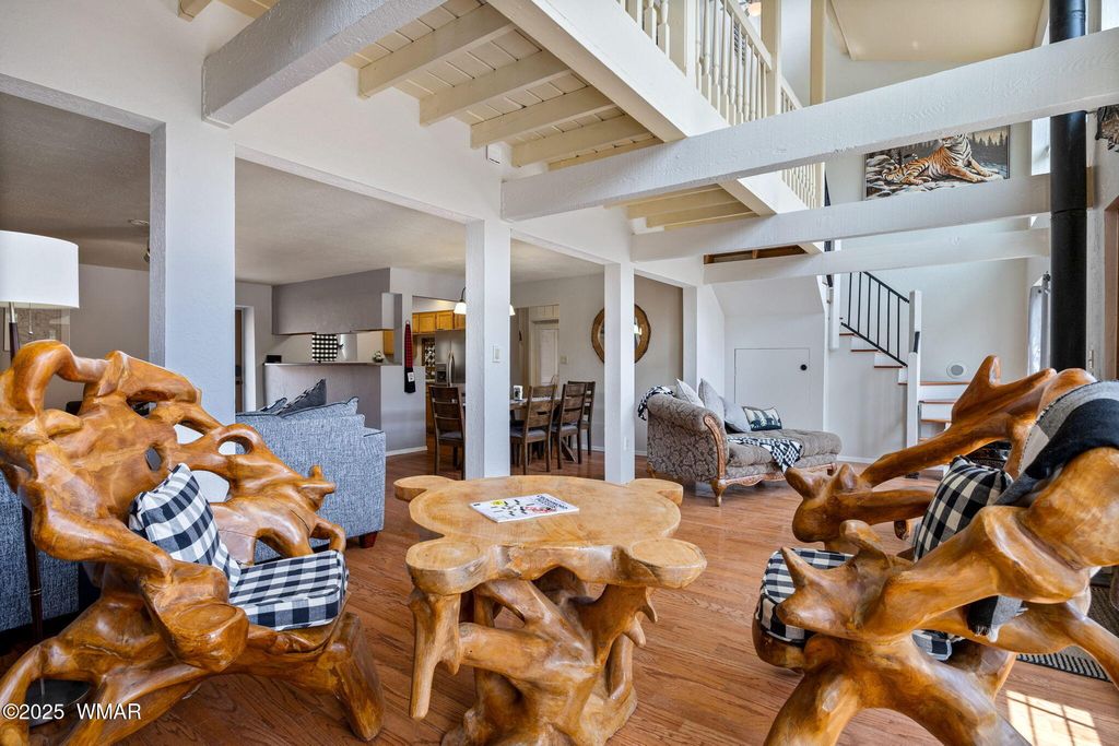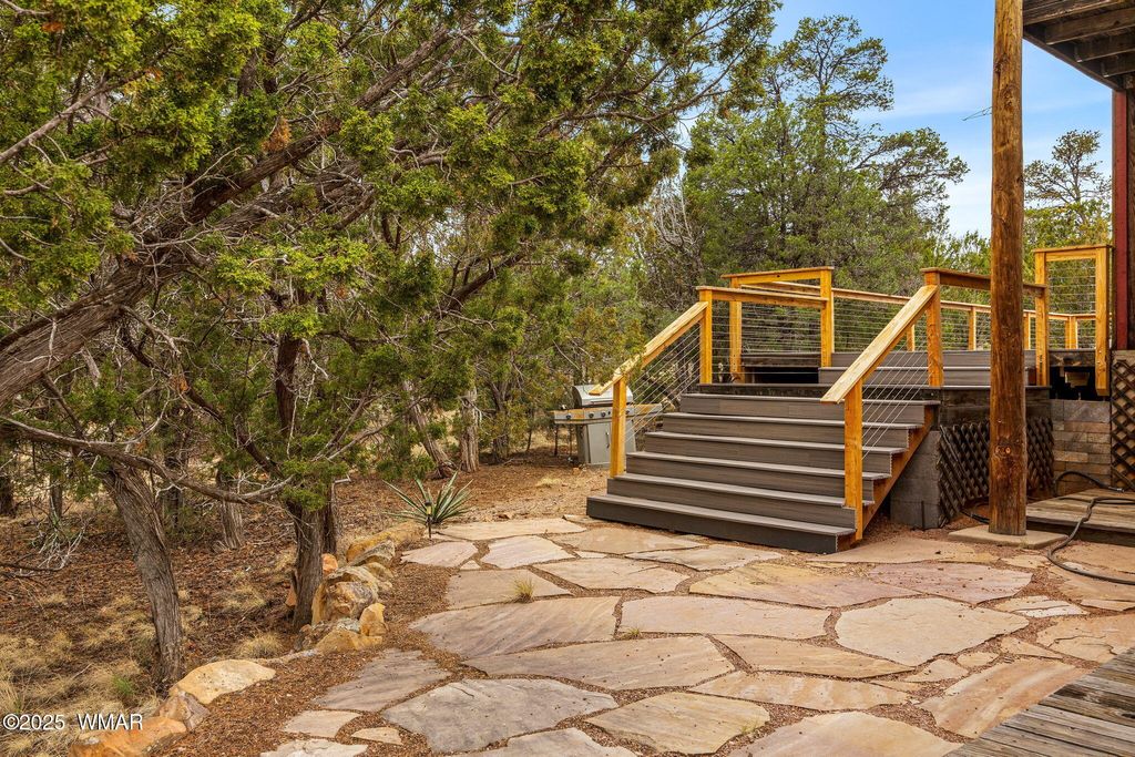 Nestled in the serene mountains, this captivating 3bd/2.5ba home on a sprawling 1.3-acre lot--free from HOA restrictions--offers everything you need to embrace your ultimate mountain lifestyle today! The open-concept interior boasts vaulted ceilings, an expansive wall of windows bathing the space in radiant sunlight, and two cozy fireplaces perfect for crisp winter evenings. The kitchen features abundant cabinetry, ample counter space, and generous storage. An indoor laundry room with additional cabinetry enhances functionality. Custom built staircase. The primary suite includes a beautifully updated bathroom with a double vanity and jacuzzi tub. The spacious additional rooms feature an updated Jack & Jill bathroom. Outside, a durable metal roof ensures peace of mind, while expansive, low-maintenance Trex decks at the front and back invite outdoor living. Under ground storage/bunker.The fully fenced property offers boundless space for exploration and endless possibilities for your recreational toys. Recently has been a successful short term rental. So many possibilities! Schedule your private showing today and start living your mountain dream!