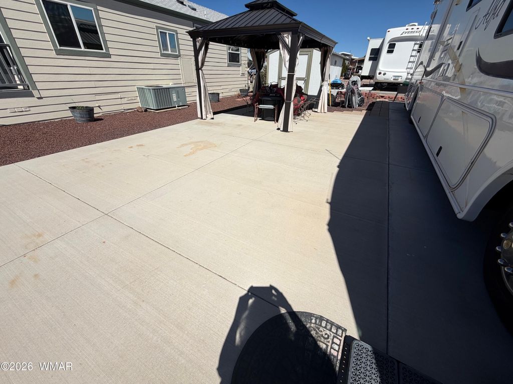 Full concrete slab with full hookups. Nice size shed with electric and a newer gazebo for shage makes this RV Lot a premium location to enjoy the summer months or year long residence at Juniper Ridge Resort, a 55 Plus, Gated Community in the cool White Mountains. Enjoy the private 18 hole golf course, pickle ball, planned activities and social events.