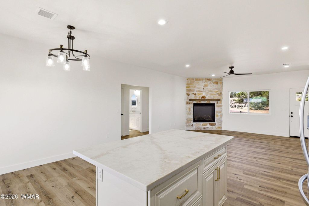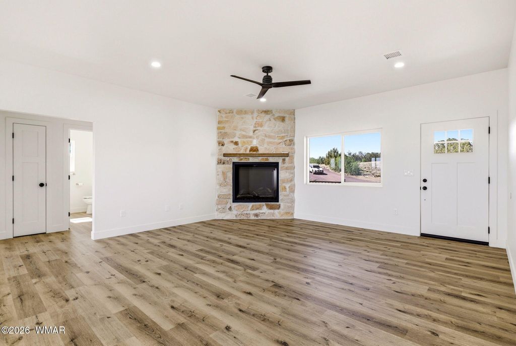 Brand new construction on 2.18 acres with stunning views! This 3-bedroom, 2-bath home offers an open-concept layout filled with natural light and upgraded finishes throughout. Enjoy enhanced cabinetry, upgraded mirrors, and thoughtful details that elevate the space. The living area features a beautiful fireplace and flows seamlessly into the kitchen and dining areas--perfect for everyday living or entertaining. The split floor plan provides privacy with a spacious primary suite and comfortable secondary bedrooms. Step out onto the large covered back porch and take in the breathtaking views. Complete with a 2-car garage--schedule your showing today, this one won't last!