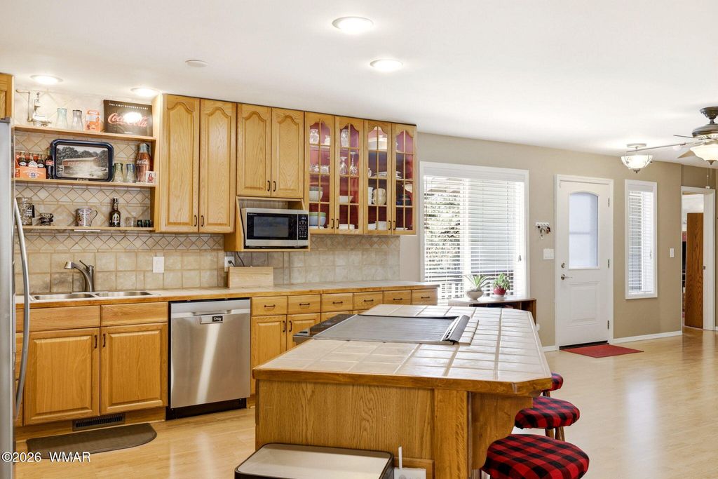 Gorgeous, meticulously maintained single-family home situated on a spacious, tree-filled lot! This inviting home features an extremely open floor plan with abundant natural light, generous living space, and ample storage throughout. Enjoy the convenience of a split floor plan all on one level, offering both comfort and privacy. Nestled in a quiet, private neighborhood surrounded by tall trees, this home provides a peaceful retreat while still being right in the heart of Show Low. Whether you're looking for a full-time residence or a serene getaway, this property truly has it all.