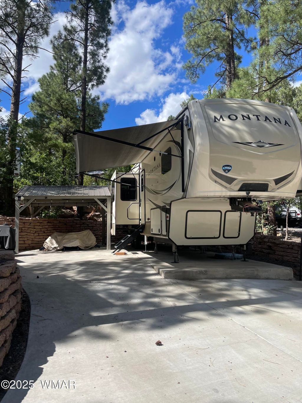 White Mountain Vacation Village is an amazing community. Vacant Land with cement slab, Ramada with electricity, lights, fan and shed. 5th Wheel also available for sale with separate bill of sale. Montana 3701LK 5th Wheel is 40 feet on cement slab, 2018 barely used, loaded with leather couches and chairs, king bed, 4 bump outs, washer/dryer/frig, sleeps 6-8. Club House activities can range from fitness, card games, board games, mahjongg, pool, bunko, bocce ball and corn hole along with a variety of community socials to better acquaint you with your neighbors. HOA covers water, sewer, trash, club house, laundry, Fiesta trail area.
