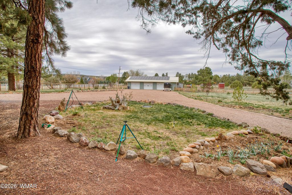 Welcome to this charming 2-bedroom, 2-bathroom home set on 3 acres, offering the perfect blend of comfort, sustainability, and space. Home and Garage are on the front of the property so plenty of room to expand on the back acreage. This property is a dream for hobbyists, gardeners, and those seeking self-sufficient living. The impressive 8-car garage/shop provides ample room for vehicles, equipment, or a full workshop setup and features a brand-new roof. The fully fenced acreage offers grounds that are thoughtfully enhanced with multiple fruit trees, mature herbs, and a greenhouse for year-round growing. The home has been updated with new doors and windows, adding efficiency and modern appeal. Along with an updated kitchen including an induction stove. Enjoy the benefits of a privat well and owned solar system, eliminating utility costs Irrigation is already in place to service the trees and landscaping, making maintenance easy and efficient. With plenty of open space, beautiful natural surroundings, and exceptional features both inside and out, this property offers a rare opportunity to enjoy country living with modern conveniences.