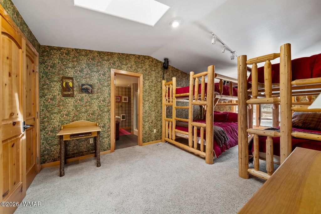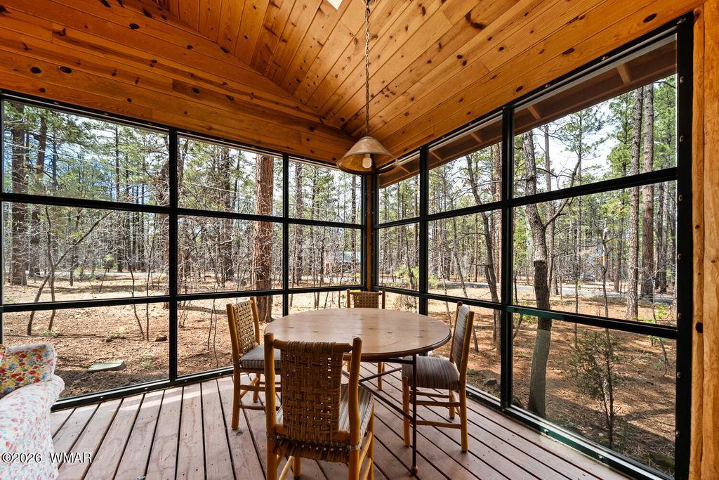 Rare opportunity to own a stunning 4,100 sq. ft. cabin in the coveted White Mountain Summer Homes community. Nestled on a private lot surrounded by towering pines, this exceptional retreat offers the perfect blend of serenity, space, and comfort. The home features five spacious bedrooms, each with its own en-suite bath, plus an additional half bath--ideal for hosting family and guests while maintaining privacy for all. Designed for both relaxation and entertaining, the open-concept living areas showcase beautiful wood flooring, a cozy wood-burning fireplace, and seamless access to a screened-in porch--perfect for enjoying the cool summer evenings. The charming front porch and expansive rear deck provide multiple outdoor living spaces, ideal for gathering, dining, or simply taking in the peaceful forest setting.The main level offers four bedroom suites, while the upstairs loft includes an additional bedroom and bath--creating a versatile space for guests, a game room, or a quiet retreat. Additional highlights include a newer metal roof, oversized two-car garage, circular driveway, and abundant storage throughout. Whether you're looking for a full-time residence, summer escape, or a place to create lasting memories, this one-of-a-kind mountain cabin delivers.
