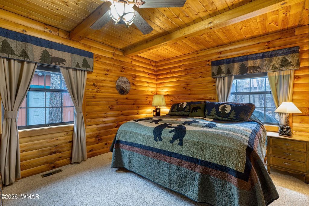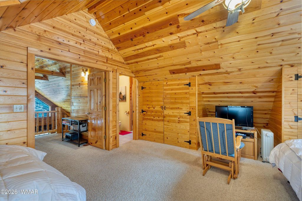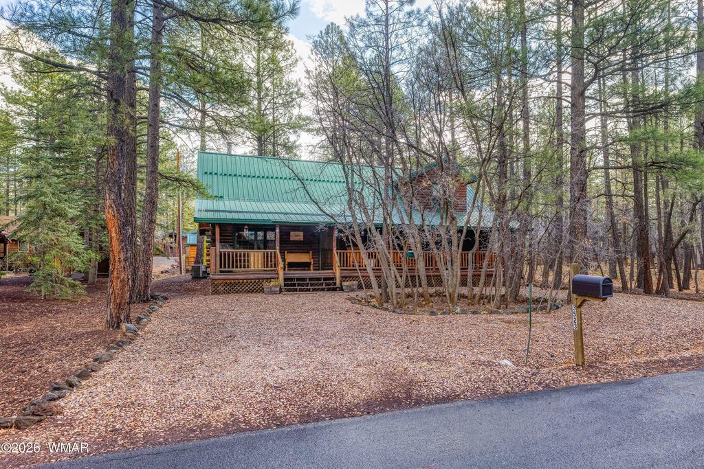 Peacefully positioned in the serene beauty of the Pinetop Lakes neighborhood, this inviting log cabin captures the true essence of mountain living. Surrounded by an abundant canopy of mature oaks and towering ponderosa pines, the property offers both privacy and a deep connection to nature. Inside, the home welcomes you with soaring vaulted ceilings accented by warm tongue-and-groove woodwork, creating a cozy yet spacious lodge-style atmosphere. The open living area is perfect for gathering, with natural textures and rustic charm throughout that lean into that classic country cabin feel. A standout feature of the home is the beautifully crafted full-log banister that guides you up the staircase and continues to accent the loft above--adding a charming, handcrafted touch that perfectly complements the cabin's rustic character. The kitchen blends comfort with convenience, featuring updated appliances that make everyday living easy while maintaining the home's authentic charm. Modern touches continue with central air conditioning, complemented by an efficient mini-split system for year-round comfort. A durable metal roof adds both longevity and low-maintenance appeal, making this cabin as practical as it is inviting. Whether you're enjoying crisp mountain mornings on the porch or unwinding beneath the pines, this property offers a peaceful retreat that truly feels like a getaway-yet with all the comforts of home.